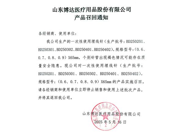山東博達醫(yī)療用品股份有限公司是生產可吸收性外科縫線專業(yè)廠家,主要產品有可吸收縫合線 、內窺鏡圈套線、穴位埋線、快吸收美容線、醫(yī)用羊腸線 膠原蛋白線以先進的生物技術提取了健康哺乳動物內臟的膠原蛋白為基材,采用先進的工藝加工而成,線體的主要成分為高純度膠原蛋白,并獲得了國家發(fā)明專利,頒布了YZB/國6301-2013《可吸收性外科縫線》產品標準,并通過了ISO9001:2015和ISO13485:2016質量管理體系認證。